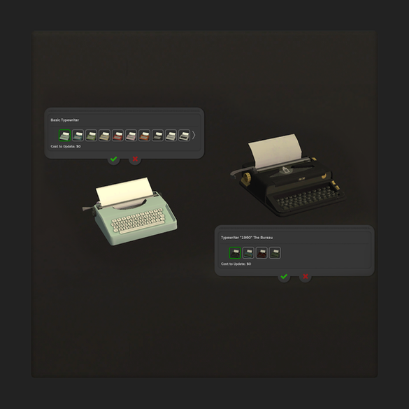 Fixed a couple of issues, including typewrites not being repairable. Changed price for Typewriter The Bureau.